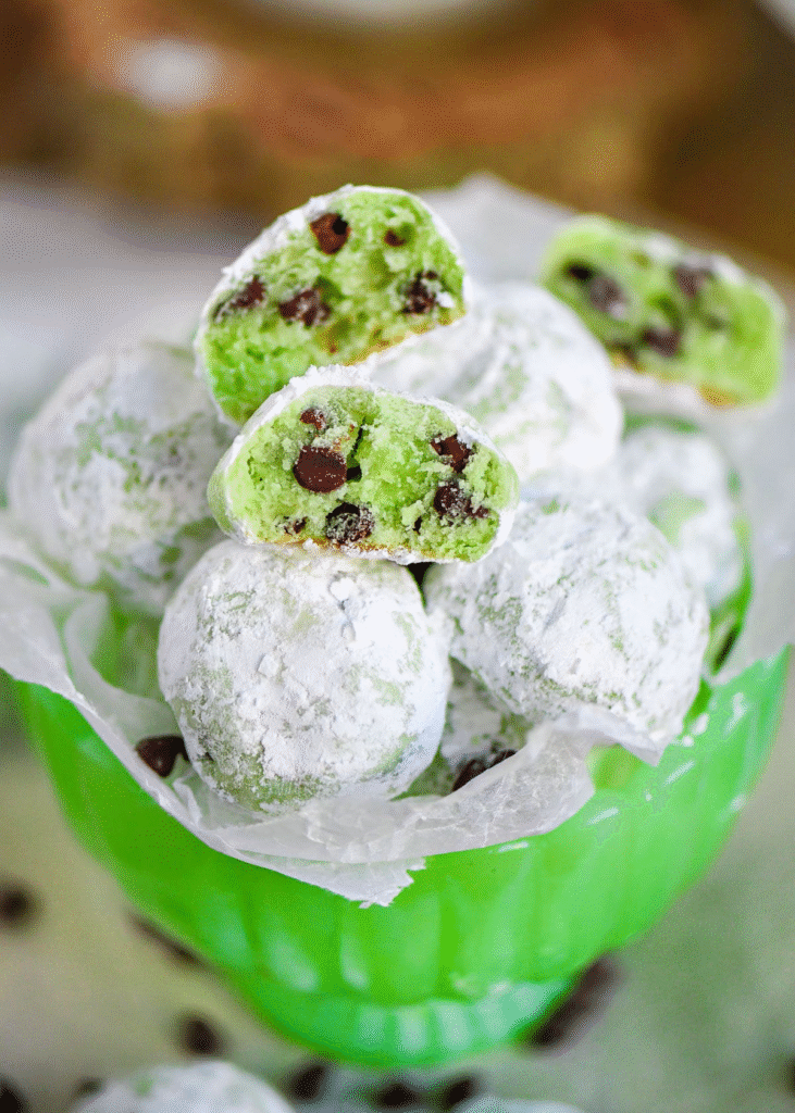 Mint Chocolate Chip Snowball Cookies